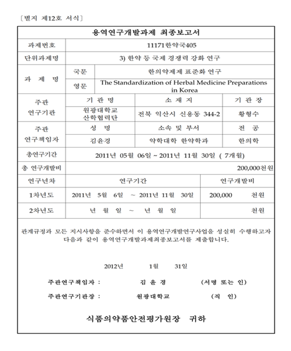 | 다음글 | [연구보고서]의료패널로 본 국민의 한의의료서비스 이용현황 |